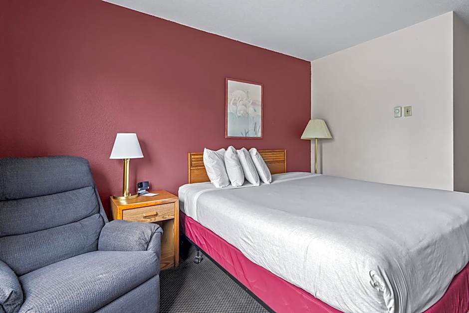 King rooms are furnished with a King size bed, air conditioning, flat-screen TV, cable TV, alarm clock/radio, coffee maker, microwave, refrigerator, recliner and charging ports for mobile devices.